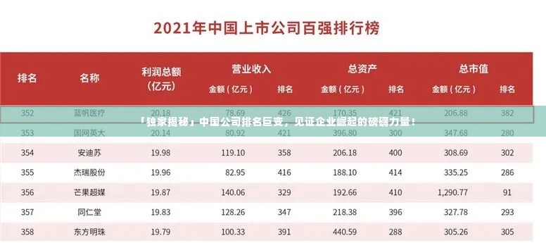 转载请注明来自天津锦麟商贸有限公司,本文标题:《「独家揭秘」中国公司排名巨变,见证企业崛起的磅礴力量!》