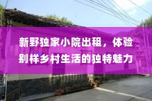 新野独家小院出租为你提供了一个独特的乡村生活体验,你可以享受宁静、舒适的生活环境,远离城市的喧嚣和繁忙,如果你对乡村生活感兴趣,不妨考虑一下新野独家小院出租,给自己一个独特的体验机会。