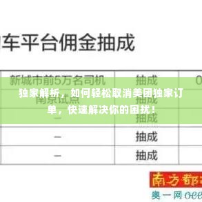 转载请注明来自天津锦麟商贸有限公司,本文标题:《独家解析,如何轻松取消美团独家订单,快速解决你的困扰!》