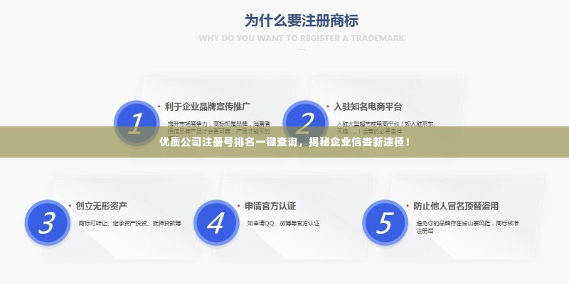 优质公司注册号排名查询是一种通过企业注册号来查询企业信息、评估企业实力和信誉的方式,企业注册号是国家赋予企业的独特识别码,通过这一识别码,我们可以查询到企业的基本信息、经营状况、信用记录等,从而了解企业的综合实力和信誉状况。
