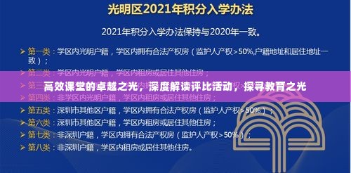 随着教育的不断革新与发展,如何提升课堂效果,打造高效课堂成为教育界关注的焦点,为此,“高效课堂评比活动”应运而生,它如同一道照亮教育前行的明灯,引领教师们探索高效课堂的奥秘,挖掘每一位学生的潜能。