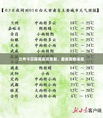兰州市迎来了新一轮的降雨天气,这场雨水为炎热的夏日带来了一丝清凉,同时也对市民的生活和出行带来了一定的影响,本文将对兰州今日雨情进行详细介绍,以便市民及时了解最新雨情信息,做好防范准备。