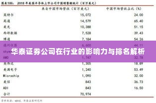 华泰证券公司在行业中的排名及其影响力不容忽视,公司凭借深厚的行业背景、丰富的市场经验、专业的团队和优质的服务,赢得了广大客户的信任和认可,华泰证券公司将继续秉承“诚信、专业、创新、卓越”的经营理念,不断提升自身的核心竞争力,为客户和社会创造更大的价值。