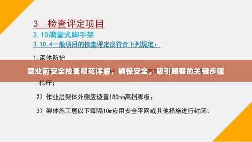 随着社会的不断发展,各行各业对于安全问题的重视程度日益加深,为确保企业正常运营及员工生命安全,营业前安全检查已成为一项至关重要的环节,本文将从规范的角度出发,详细介绍营业前安全检查的要求和流程。