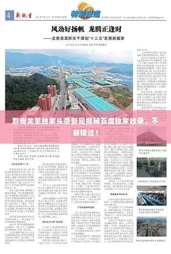 百度头条新闻对黔南龙里的报道全面展示了该地区的发展成果和未来前景,通过新闻报道的传递,更多的人了解了黔南龙里的美丽风貌和发展潜力,相信在不久的将来,黔南龙里将继续迎来更加美好的发展,让我们共同期待这片热土的辉煌未来!