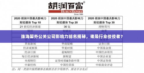 珠海,这座美丽的海滨城市,以其独特的地理位置和开放的经济环境吸引了众多国内外公关公司的目光,国外公关公司以其丰富的经验和专业的服务,在珠海市场上占据了一定的地位,本文将为您揭示国外公关公司在珠海的排名及相关情况。