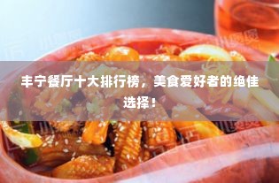 是丰宁餐厅排名前十名的介绍,这些餐厅各具特色,为食客提供多样化的美食选择,在丰宁的美食之旅中,这些餐厅是您的绝佳选择,无论您喜欢哪种口味的美食,都能在这些餐厅找到满意的味道,希望您能在丰宁的美食之旅中,享受到这些餐厅带来的美好体验。