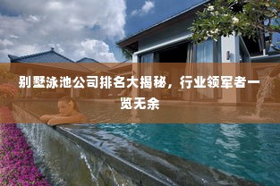 随着生活品质的提升,别墅泳池已成为高端住宅的标配之一,为满足日益增长的消费需求,众多别墅泳池公司纷纷涌现,竞争日趋激烈,本文将为您揭示当前别墅泳池公司的排名,以助您了解行业现状及选择最适合的服务商。