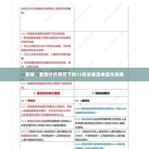 随着建筑行业的快速发展,安装工程的计价规范日益受到重视,本文旨在介绍“13安装清单计价规范”,该规范对于安装工程的计价具有指导意义,有利于提高计价准确性,促进工程建设的顺利进行。