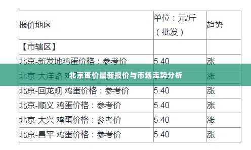 随着生活水平的提高,人们对于食品的需求也日益增长,其中鸡蛋作为重要的营养来源之一,其价格动态一直备受关注,本文将为您带来北京今日蛋价的最新报价及市场分析。