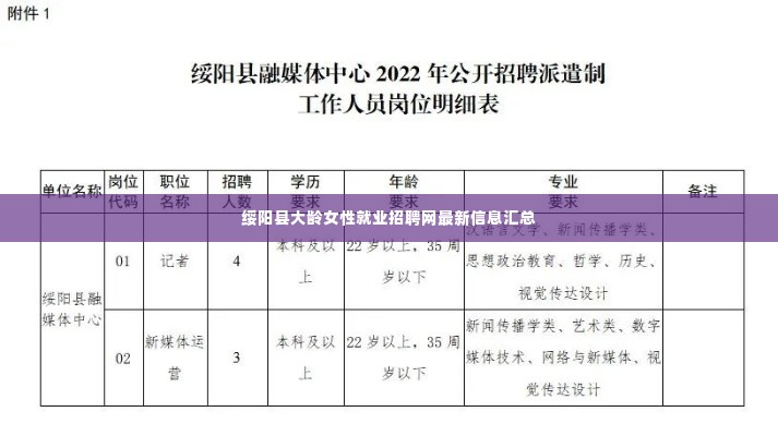 随着社会的不断发展和进步,招聘与求职的方式也在发生着日新月异的变化,对于绥阳县的大龄女性而言,寻找合适的工作机会同样需要关注最新的招聘信息,本文将围绕“绥阳县大龄女人招聘网最新信息”这一主题展开,旨在为求职者提供一份详尽的资讯概览。