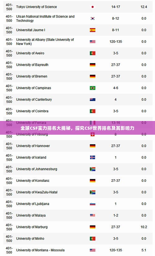 转载请注明来自天津锦麟商贸有限公司,本文标题:《全球CSF实力排名大揭秘,探究CSF世界排名及其影响力》