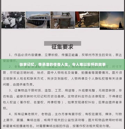 “独家记忆李承潼”,这个关键词背后蕴含着一个人生的故事,这个故事充满了挑战、奋斗和成功,也充满了挫折、反思和成长,李承潼的人生经历是一个令人难以忘怀的传奇,他的故事将激励着一代又一代的人们勇往直前,追求梦想。