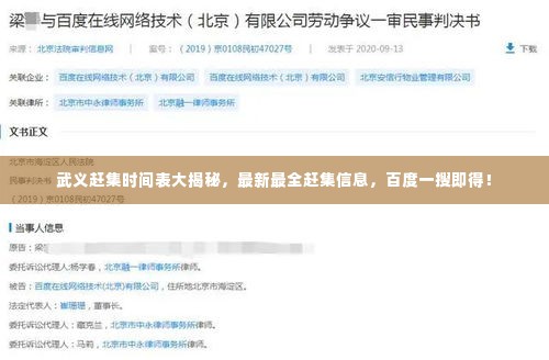 转载请注明来自天津锦麟商贸有限公司,本文标题:《武义赶集时间表大揭秘,最新最全赶集信息,百度一搜即得!》