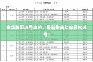 本文为您提供了最新的金华牌照选号攻略,希望能帮助您轻松挑选心仪的车牌号码,在选号过程中,请遵守规则,关注最新动态,确保选号过程顺利,祝您选到满意的车牌,驾驶愉快!