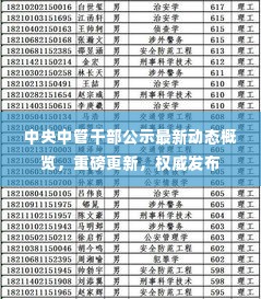 随着我国政治体制的日益完善,中央中管干部的选拔和任命工作越来越受到社会各界的关注,中央中管干部公示制度再次引起广泛热议,本文将围绕这一主题展开,介绍最新的公示动态及相关背景信息。