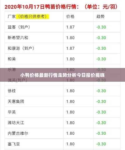 近年来,随着人们对健康饮食的重视,养殖业逐渐受到关注,鸭肉因其营养丰富、口感鲜美而备受消费者喜爱,本文将为您带来今日小鸭价格的最新报价及分析。