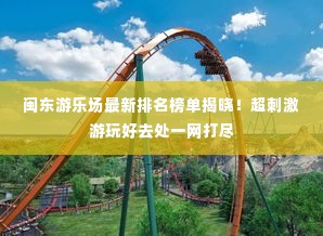 闽东,这片充满活力和魅力的土地,以其丰富的自然资源和深厚的文化底蕴,吸引了无数游客的目光,随着旅游业的蓬勃发展,游乐场作为旅游的重要组成部分,也在闽东地区日益兴盛,本文将为您带来闽东著名游乐场排名榜最新的相关信息。