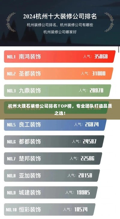 杭州,这座充满历史底蕴与现代气息交融的城市,以其独特的魅力吸引着众多装修公司的目光,大理石作为一种高档的装饰材料,因其质感豪华、纹理独特而备受追捧,本文将为您揭示杭州大理石装修公司的排名,帮助您选择最适合的合作伙伴。