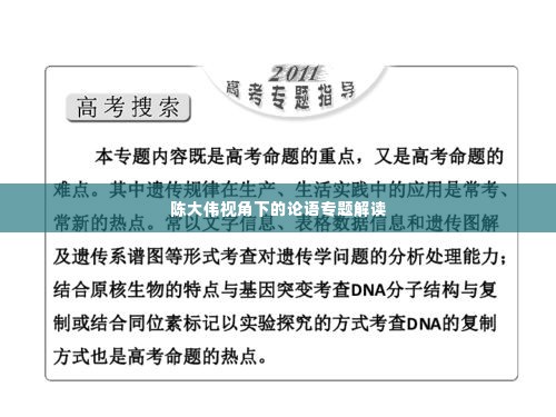 自古以来,《论语》一直是中国文化的重要组成部分,其深邃的哲理和富有智慧的箴言为世人提供了人生的指引,陈大伟,一位深受尊重的教育家和学者,对《论语》有着深入的研究和独到的见解,本文将从陈大伟的视角探讨《论语》专题。