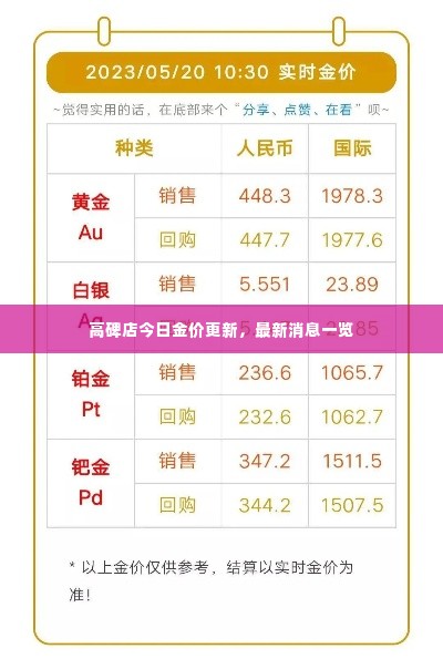 根据最新消息,高碑店今日金价有所上涨,具体价格因品牌、纯度、工艺等因素而有所差异,投资者和消费者可以通过各大金店、金融机构以及在线平台了解实时金价。