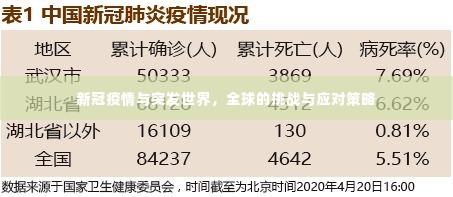 面对这样的突发世界,全球各国都在积极应对,各国政府采取了严格的防控措施,如封锁城市、限制出行、强制隔离等,以遏制疫情的传播,各国也在加强国际合作,共同研发疫苗和药物,共享抗疫经验和技术,共同应对疫情带来的挑战,全球范围内的民间力量也在积极参与抗疫,如捐赠物资、志愿服务等,共同守护人类的生命安全与健康。
