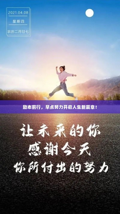 在这个充满竞争的时代,早点努力意味着更多的机会、更多的成功,让我们牢记这些励志语录,勇往直前,不畏艰难,努力实现自己的梦想,时间不会等人,机会只留给那些早行动的人,让我们把握每一个今天,为明天的辉煌而努力,愿我们都能在自己的道路上,早点努力,励志前行!