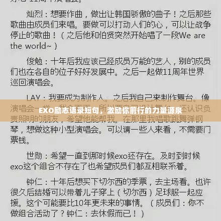 转载请注明来自天津锦麟商贸有限公司,本文标题:《EXO励志语录短句,激励你前行的力量源泉》