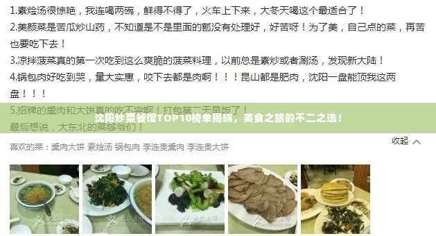 就是沈阳炒菜餐馆排名前十名的介绍,这些餐馆各有特色,无论是口味、环境还是服务,都能满足食客们的需求,在沈阳的美食之旅中,不妨到这些餐馆品尝一下当地的炒菜,感受中华美食的魅力。