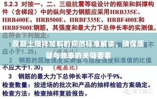 混凝土搅拌加料规范标准是保障混凝土质量的重要措施,生产人员应严格遵守规范标准,确保混凝土的质量符合国家标准和工程设计要求,相关部门应加强对混凝土生产过程的监督,确保规范标准的执行,只有这样,才能保障工程的安全性和持久性。