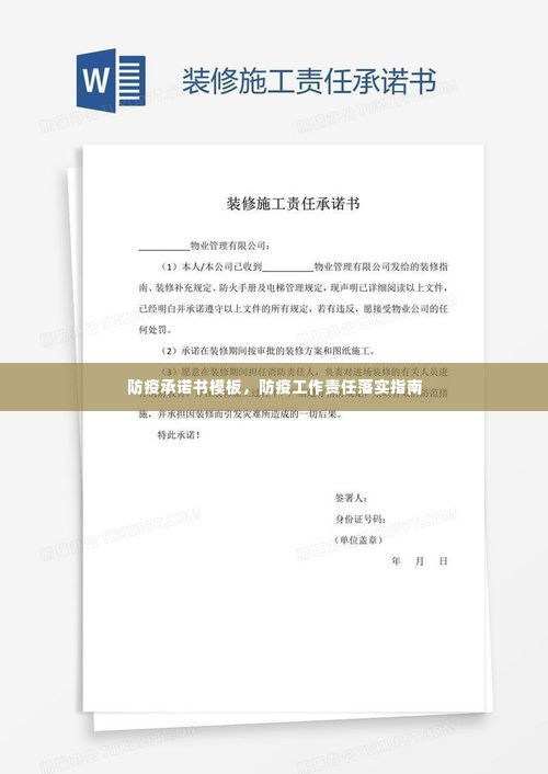 随着新冠疫情的蔓延,防疫工作成为了每个人的重要责任,为了有效防控疫情,许多单位和个人都需要签署防疫工作承诺书,明确自身的防疫责任和措施,本文将为大家介绍一份防疫工作承诺书模板,帮助大家更好地了解和落实防疫工作。