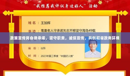 转载请注明来自天津锦麟商贸有限公司,本文标题:《政策宣传岗自律承诺,坚守职责,诚信宣传,共创和谐政务环境》