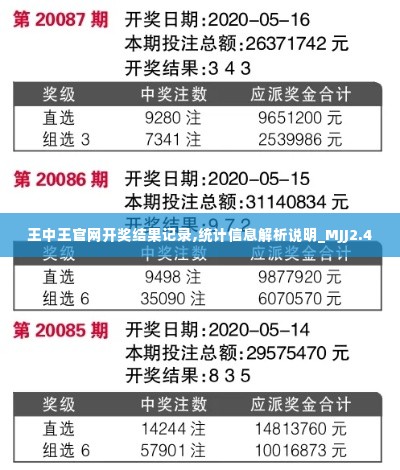在当前互联网快速发展的时代,数据分析与统计信息的重要性愈加凸显。尤其是在各类娱乐场所和游戏行业,如何获取并分析相关数据,不仅影响了市场的健康发展,也深刻影响了玩家的体验和运营方的决策。本篇文章将围绕“王中王官网开奖结果记录,统计信息解析说明_MJJ2.40”,对相关数据进行详细探讨和分析,为行业内人士提供有价值的参考。