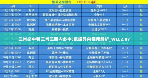 在目前的数字化时代,数据分析已经成为各行业优化决策的重要工具。特别是在博彩和彩票行业,数据导向的决策能够显著提高中彩的概率。因此,本文件旨在深入探讨“三肖必中特三肖三期内必中,数据导向程序解析_WLL2.87”的相关内容,通过科学的数据分析和程序算法,为用户提供更为精准的彩种预测和选号策略。
