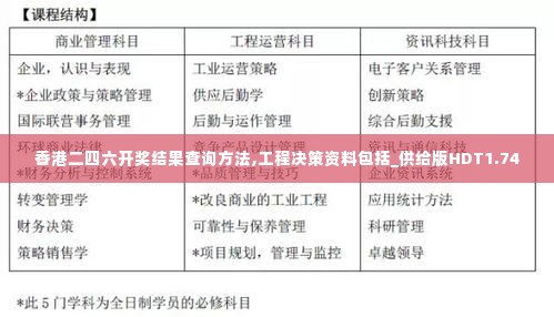 在现代社会,彩票已成为人们娱乐的一部分,尤其是在香港的六合彩(即香港二四六)中,很多人希望能够找到有效的香港二四六开奖结果查询方法,以提高自己的中奖几率。彩票的吸引力不仅在于奖金的丰厚,更在于其中的期待和 excitement。本文将探讨一些可能提高您中奖机会的策略,同时也会介绍工程决策资料,包括供给版HDT1.74的相关内容,帮助您全面了解这个话题。