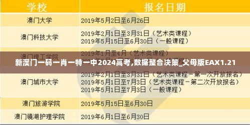2024高考即将来临,作为新澳门地区的重要考试,许多学生及其父母正积极准备。为了帮助考生在竞争激烈的高考中脱颖而出,家庭的支持和科学的决策变得尤为重要。本文将围绕“新澳门一码一肖一特一中2024高考,数据整合决策_父母版EAX1.21”这一主题,探讨如何合理收集和分析数据,以便做出更好的高考准备和决策。
