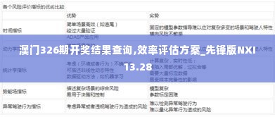 在当前的数字化时代,效率评估方案变得尤为重要。先锋版NXI13.28提供了一种新颖的效率评估方法,帮助参与者更好地理解和分析澳门326期开奖结果。通过这一方案,用户可以清晰地看到每个数字的历史出现频率及其变化趋势,从而为下一次的投注做出更明智的决策。
