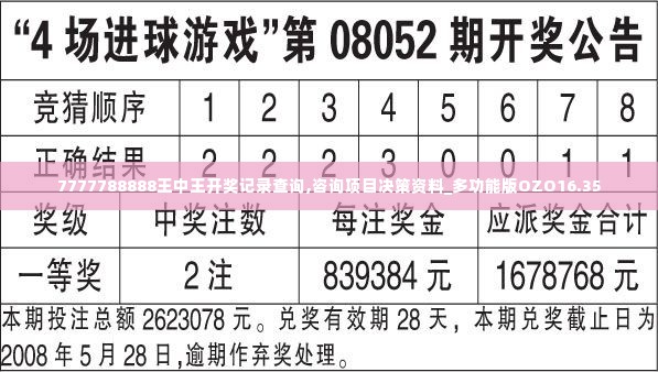 在当今数字化的时代,彩票成为了许多人休闲娱乐的重要选择,而“7777788888王中王”显然是一个引人注目的名称。在彩票的世界中,期开奖结果的查询是玩家必备的技能之一,尤其是那些致力于提高中奖机率的购彩者。本文将为您深度解析7777788888王中王开奖记录的查询方式,帮助您更好地掌握这一主要信息,从而提升您的购彩体验。