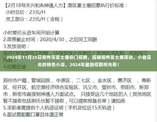 郑州富士康周边的小巷特色小店【店名】,不仅提供了一个独特的工作环境,更是一个展示才华的舞台,在2024年11月25日的招聘中,他们将欢迎所有有志之士的加入,让我们一起期待他们的未来,一起创造更多的可能!
