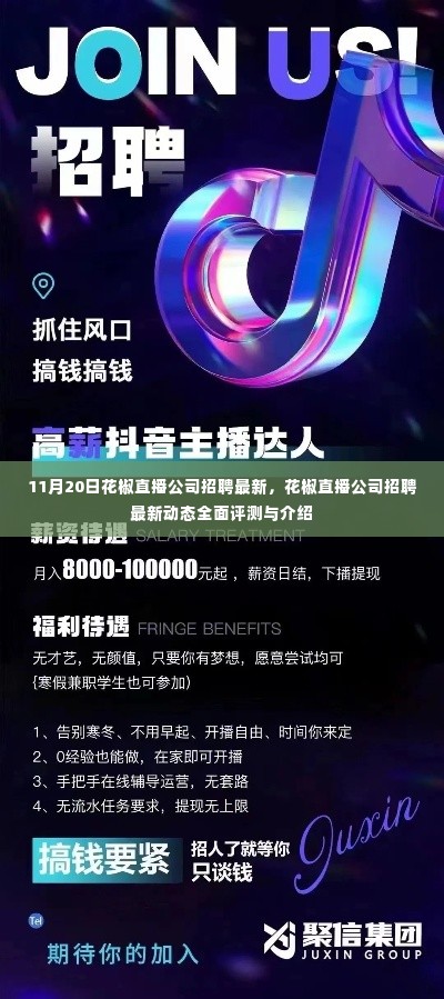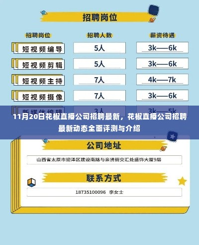 随着互联网的普及和直播行业的飞速发展,花椒直播公司作为行业内的佼佼者,一直备受关注,在11月20日的最新招聘活动中,花椒直播公司展现出了强大的发展潜力和吸引力,本文将围绕花椒直播公司的招聘动态,从产品特性、使用体验、与竞品对比、优缺点以及目标用户群体分析等多个维度进行全面评测与介绍。