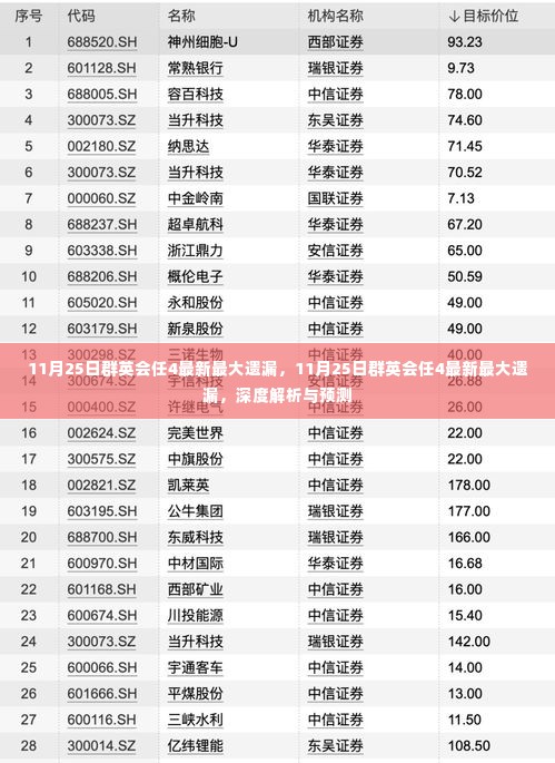 亲爱的朋友们,今天我们来聊聊一个备受关注的话题——11月25日群英会任4的最新最大遗漏,在这个充满挑战与机遇的时代,每一场盛会都牵动着无数人的心弦,而群英会更是汇聚了众多精英,吸引了无数目光,本文将围绕这一主题展开,带您深入了解任4的最新最大遗漏情况,并探讨其背后的原因及未来可能的走向。