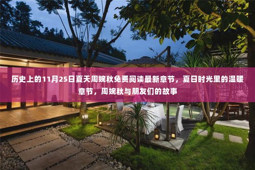 夏日炎炎,阳光透过葱郁的绿叶洒下斑驳光影,在这个充满生机与活力的季节里,我们跟随主人公周婉秋的脚步,一同探寻那些发生在夏日时光里的温暖章节,在这个美丽的夏日里,周婉秋意外发现了一本关于历史的小说,而更令她惊喜的是,这本小说正好有免费阅读最新章节的机会,这个夏天,周婉秋与她的朋友们共同开启了一段充满爱与陪伴的温馨之旅。