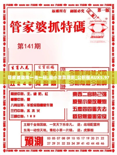 在现代社会,信息技术的发展给我们的生活带来了巨大的便利,但与此同时,信息的安全性和保密性也变得愈发重要。面对海量数据流动的时代,如何在保护个人隐私的同时实现信息共享,已成为一个亟需解决的问题。在这一背景下,"最小泄露原则"逐渐受到关注,并在实践中得到了广泛应用。本文将围绕“管家婆最准一肖一码”这一关键词,探讨最小泄露原则的内涵、应用及其在信息安全中的重要性。
